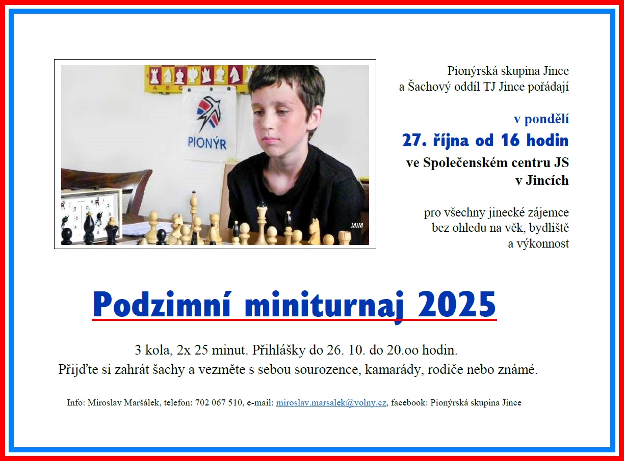 27. října, Jince: PODZIMNÍ MINITURNAJ, propozice zde