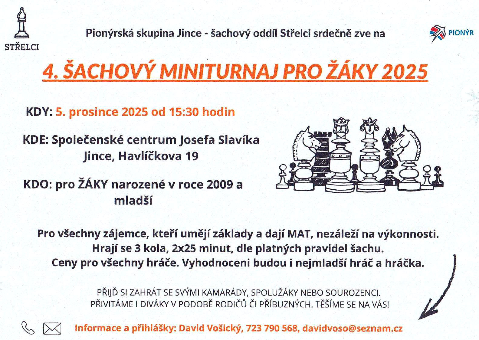 5. prosince, Jince: 5. MINITURNAJ PRO ŽÁKY, propozice zde